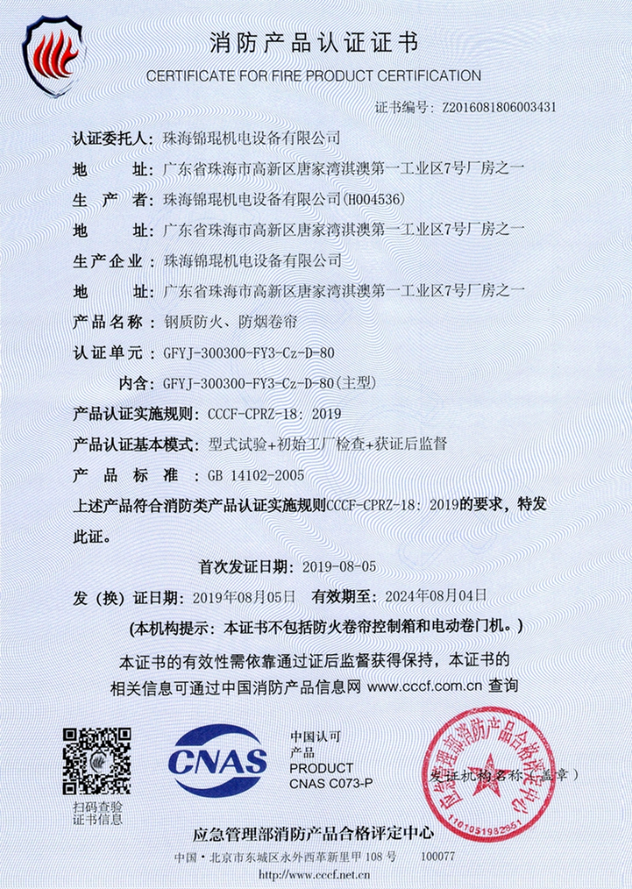 消防產品認證證書-鋼質